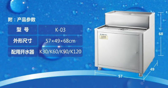 货号:K-03 配用开水器:JO-K30/60/90/120的IC卡机型 外形尺寸:56*49*68cm